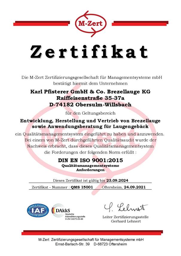 immer bessere Rohstoffe konnte Pfisterer Brezellaugeâ zu dem Produkt gemacht werden, was es